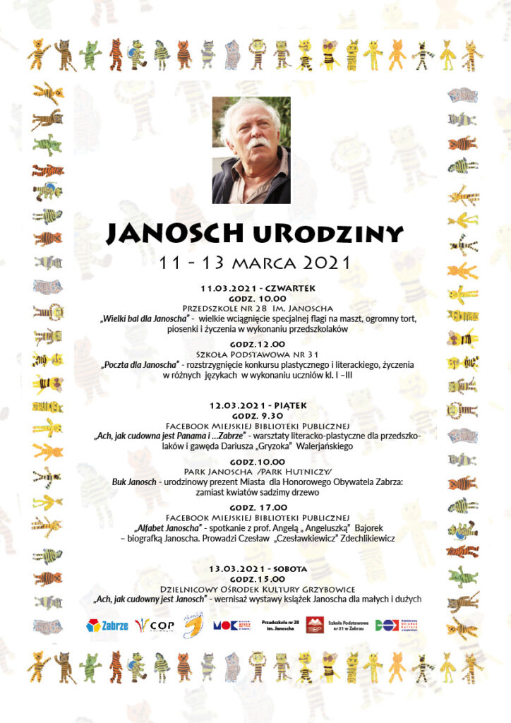 Zabrzańskie obchody kolejnych urodzin Janoscha zakończą się 13 marca, w Dzielnicowym Ośrodku Kultury w Zabrzu-Grzybowicach (ul. Badestinusa 60), gdzie odbędzie się wernisaż wystawy „Ach, jak cudowny jest Janosch”. W trakcie spotkania zapoznać się będzie można z szeregiem rzadkich, polskich wydań książek Janoscha. Wystawa potrwa do 25 marca, kiedy to zaprezentowane zostaną na niej fotokopie książek.